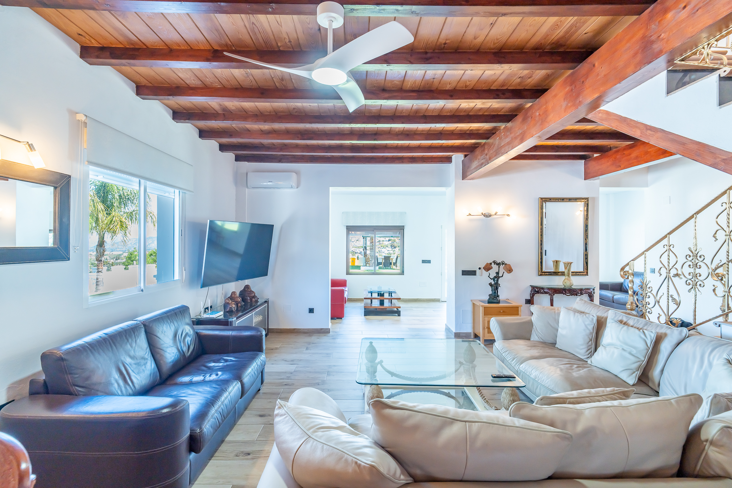 The villa, with a built area of 318 m², is distributed over two floors and comprises a total of 7 bedrooms and 5 bathrooms: